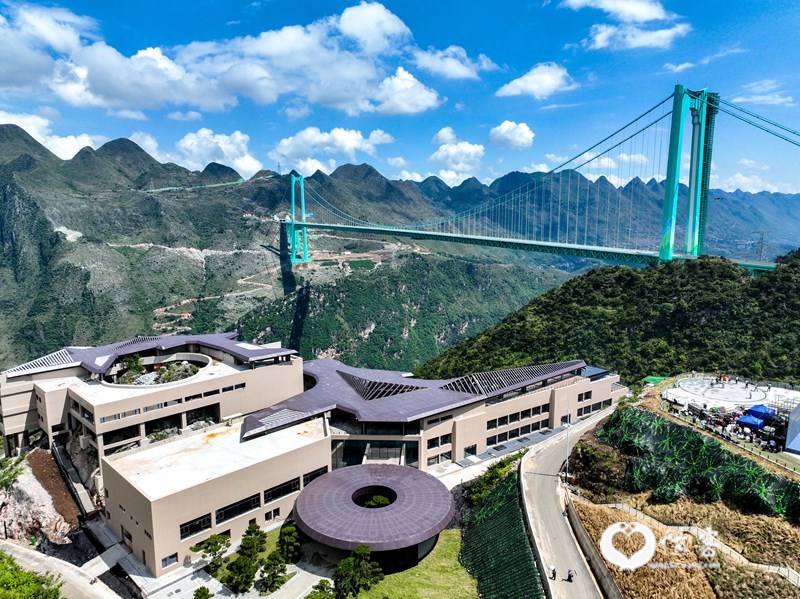 9月28日拍摄的贵州花江峡谷大桥和云渡服务区。