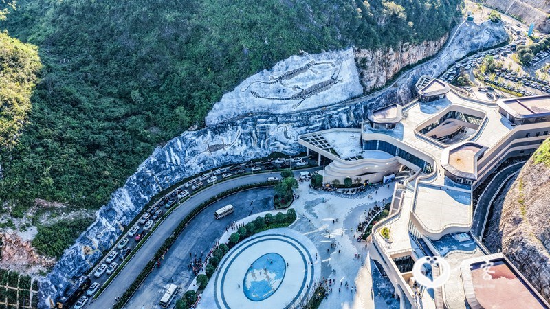 9月28日,驶入服务区观看花江峡谷大桥的车辆络绎不绝(无人机照片)。
