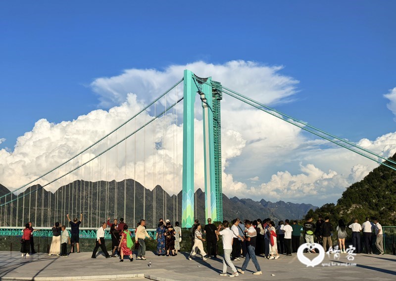 9月28日,游客在贵州花江峡谷大桥旁的云渡服务区参观大桥(手机照片)。
