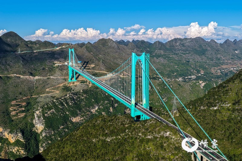 9月28日,世界第一高桥——贵州花江峡谷大桥建成通车。花江峡谷大桥是贵州六枝至安龙高速公路的控制性工程,大桥全长2890米,主跨径1420米,是目前世界山区峡谷第一大跨度钢桁梁悬索桥;其桥面距水面垂直高度625米,是新的世界第一高桥。